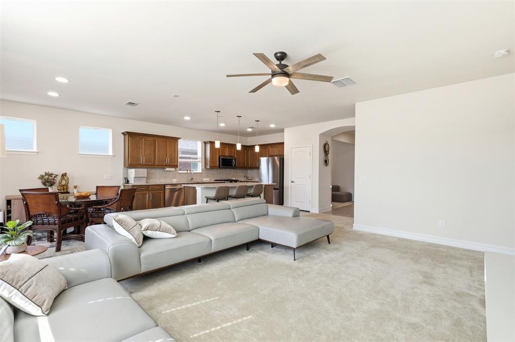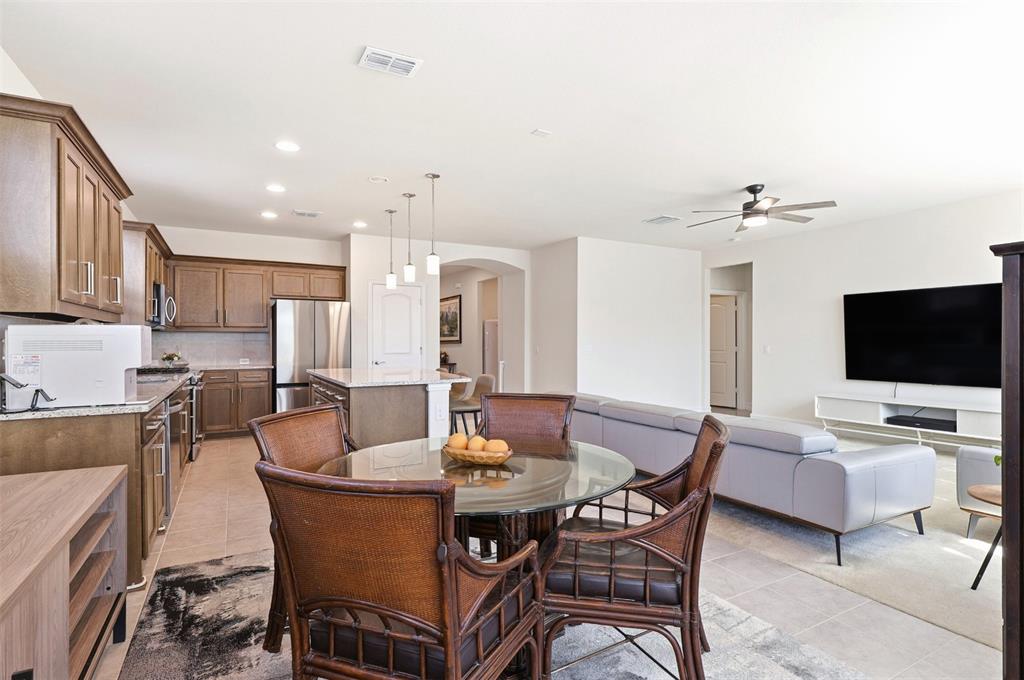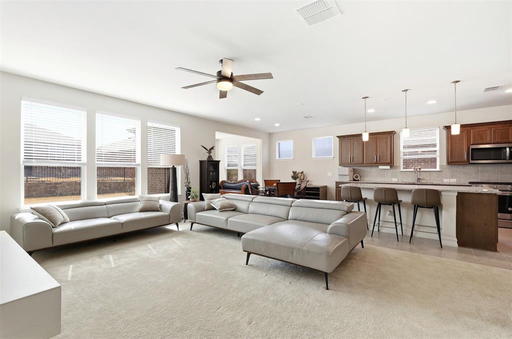Welcome to this beautifully maintained single-story home located in a desirable 55+ community in Aubrey, Texas. Designed for comfortable and low-maintenance living, this thoughtfully laid-out residence offers an open-concept floor plan that seamlessly connects the living, dining, and kitchen areas, creating a bright and inviting space ideal for both everyday living and entertaining. The spacious primary suite provides a private retreat with an ensuite bath and generous closet space, while an additional bedroom offers flexibility for guests, a home office, or hobbies. With no stairs to navigate, this home emphasizes convenience and accessibility throughout. Residents enjoy a peaceful, community-focused lifestyle with amenities and social opportunities tailored to active adults, all while being conveniently located near abundant shopping and dining options. Everyday essentials are easily accessible with nearby grocery stores such as Costco, Kroger, and H-E-B just a short drive away, making errands simple and convenient. This is an excellent opportunity to enjoy relaxed, one-level living in one of Aubrey’s sought-after active adult neighborhoods.
